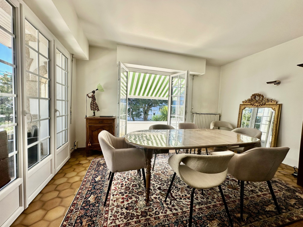À seulement 50 mètres de la plage et à deux pas des commerces de l’avenue Lajarrige, cette villa offre des volumes généreux avec environ 140 m² habitables (250 m² utiles). Au rez-de-chaussée, vous serez accueilli par une entrée menant à une pièce de vie avec cheminée, ouverte sur de spacieuses terrasses ensoleillées. La cuisine, aménagée et équipée, complète cet espace convivial. Une chambre avec sa salle d’eau privative ainsi que des wc indépendants viennent parfaire ce niveau. À l’étage, un palier dessert trois chambres, une salle de bains et des wc séparés. Le sous-sol propose de beaux espaces supplémentaires avec un garage d’environ 80 m², une lingerie, une buanderie et une cave. Le tout sur un joli jardin arboré de 447 m². Idéalement située et parfaitement agencée, cette villa convient aussi bien pour une résidence principale que secondaire.