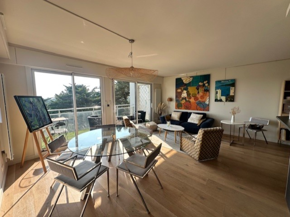 Au 4 ème étage d'une résidence bien entretenue et à proximité immédiate de l'av Lajarrige, vous découvrirez les volumes de ce bel appartement de 94.19 m² en parfait état : Spacieuse entrée, pièce de vie avec cuisine ouverte prolongée d'une confortable et lumineuse terrasse avec une vue mer, 3 chambres dont une avec salle de bains attenante, 2 wc, salle d'eau. Prestations de qualité avec aspiration centralisée et de nombreux rangements. Un grand garage avec une cave attenante viennent compléter ce bien. Un emplacement qui vous conviendra parfaitement en résidence principale comme en secondaire.